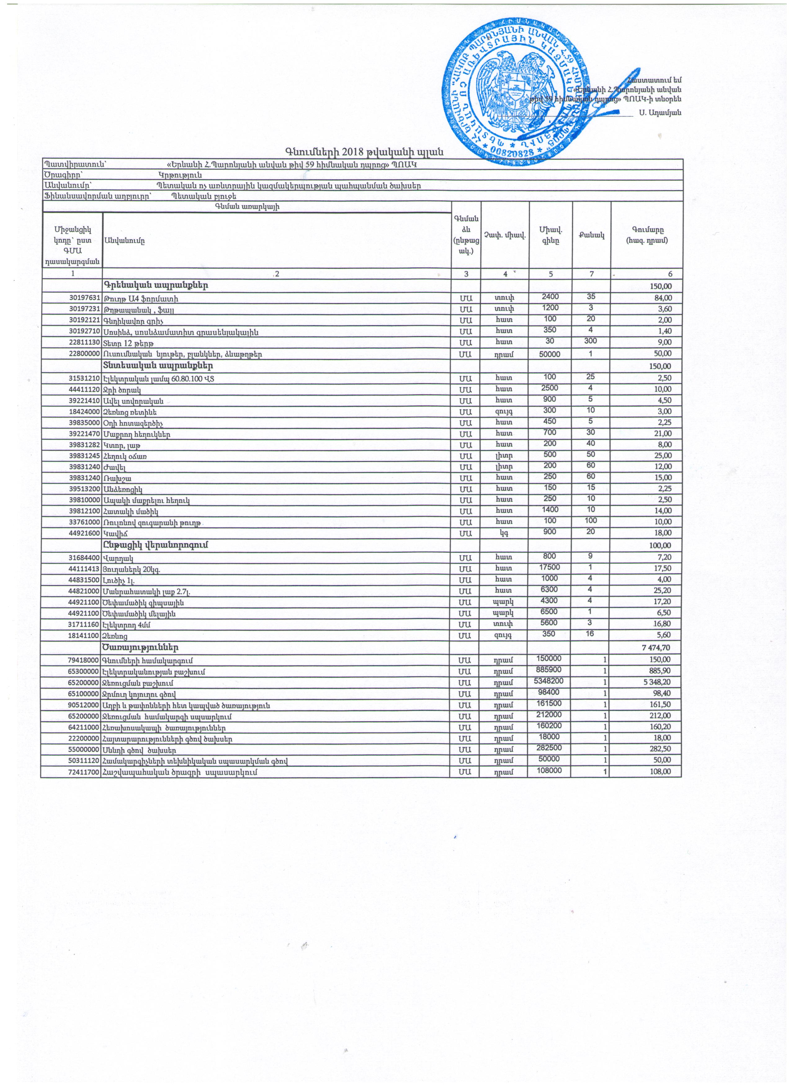 «Երևանի մտավոր թերզարգացում ունեցող երեխաների թիվ 6 հատուկ դպրոց» ՊՈԱԿ-ի 2018 թվականի գնումների պլան