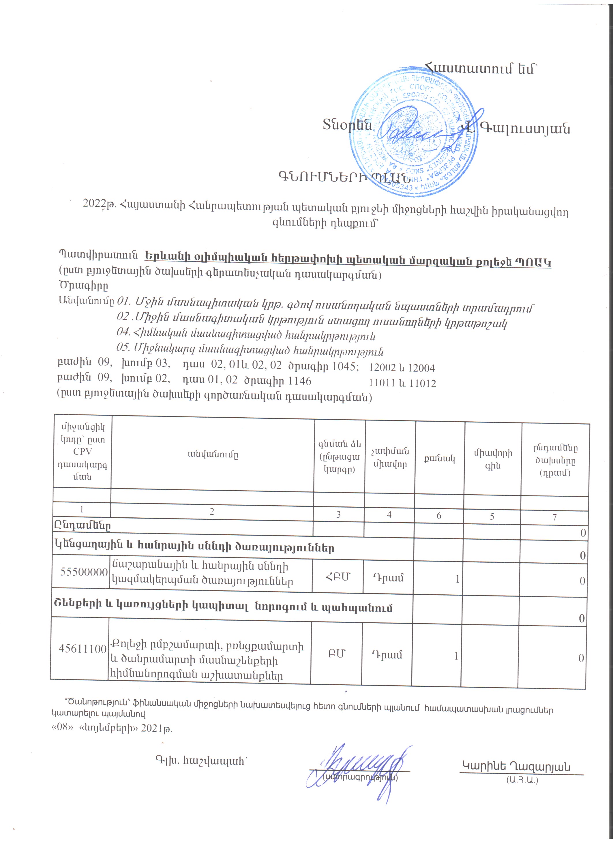 (Հրապարակված է 2021-11-08 16:27:41-ից անժամկետ)