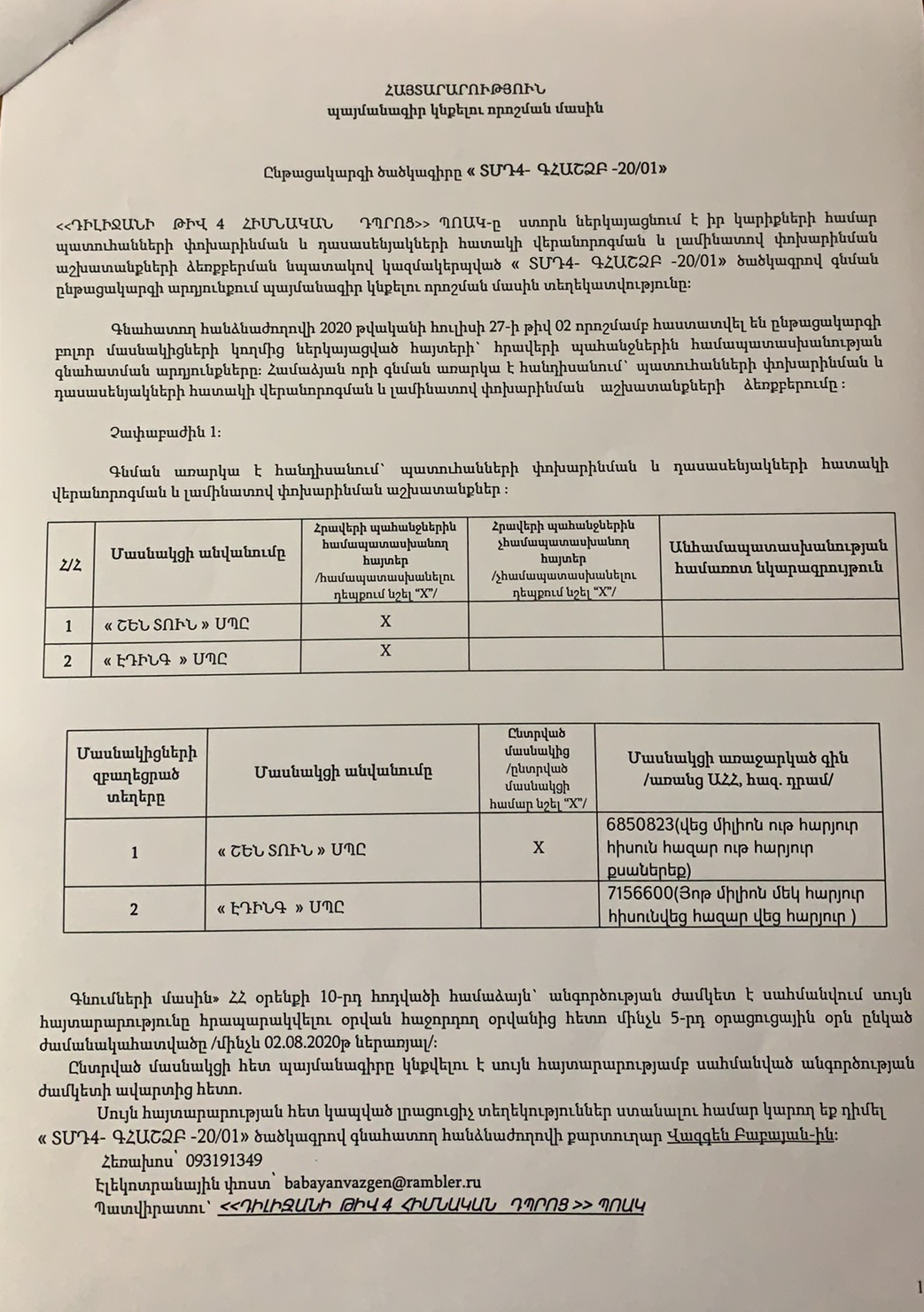 (Հրապարակված է 2020-07-28 14:40:42-ից անժամկետ)