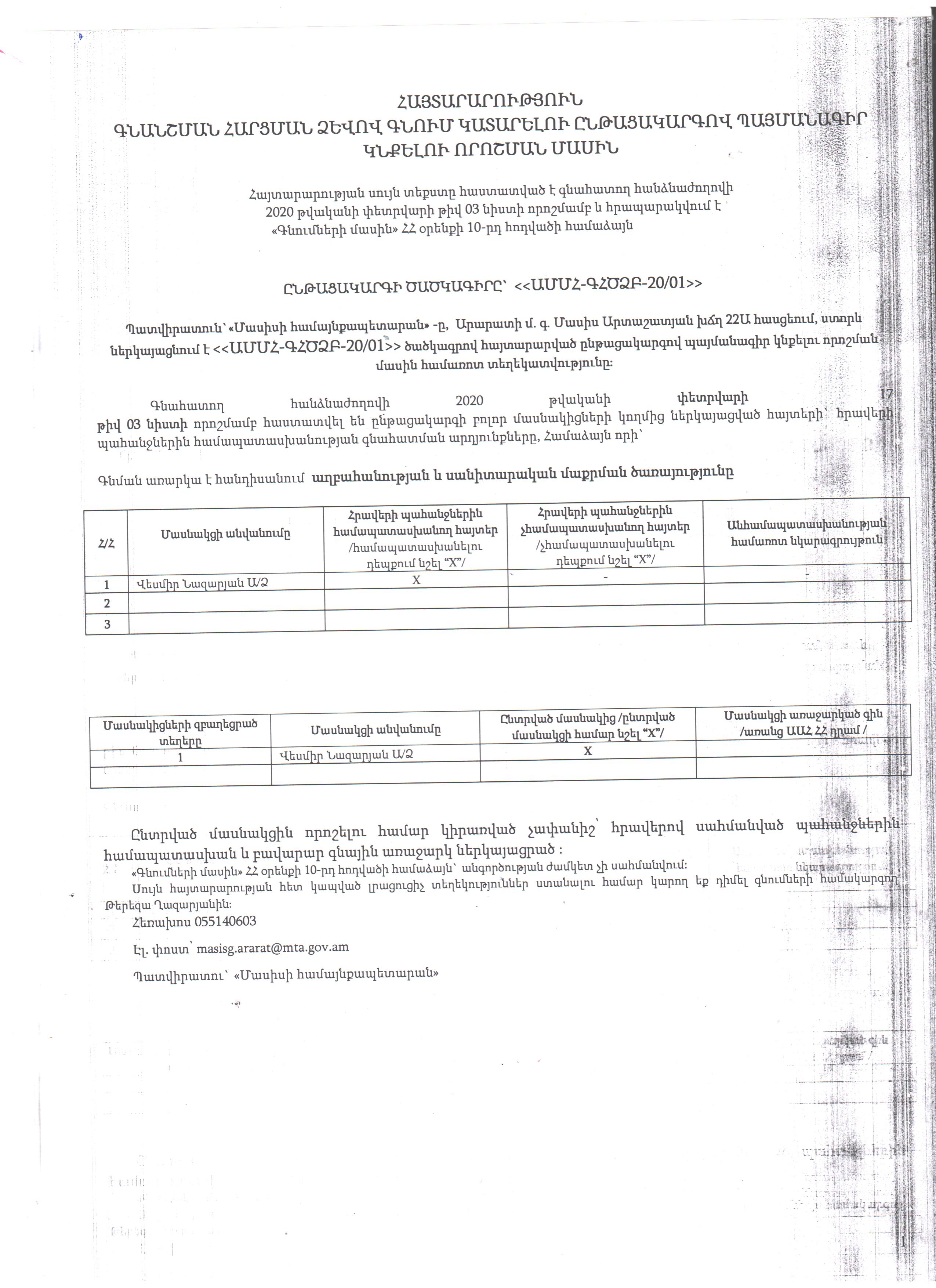 (Հրապարակված է 2020-02-19 14:31:34-ից անժամկետ)