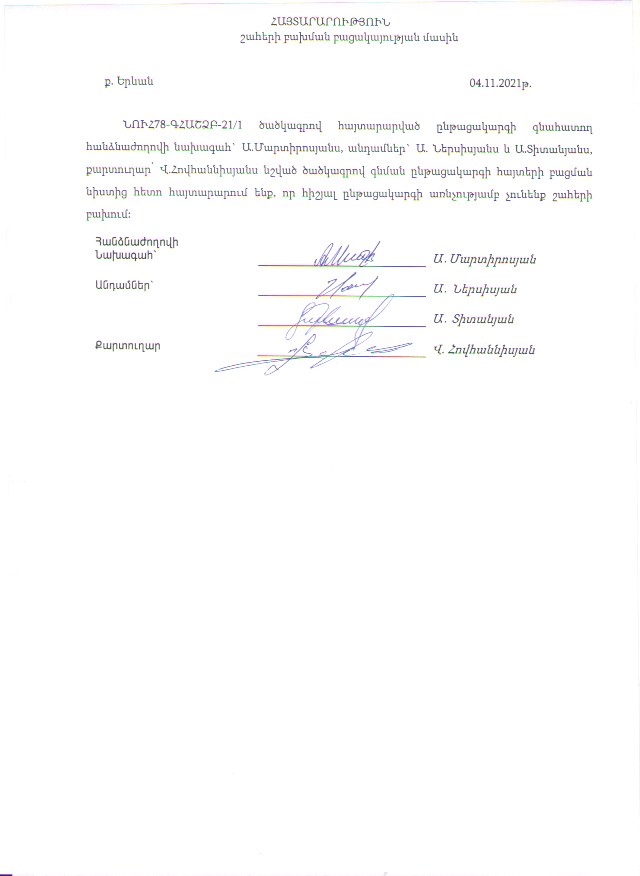 (Հրապարակված է 2021-11-04 17:16:51-ից անժամկետ)