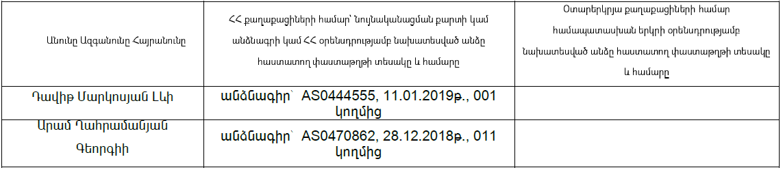 (Հրապարակված է 2019-12-30 10:27:28-ից անժամկետ)