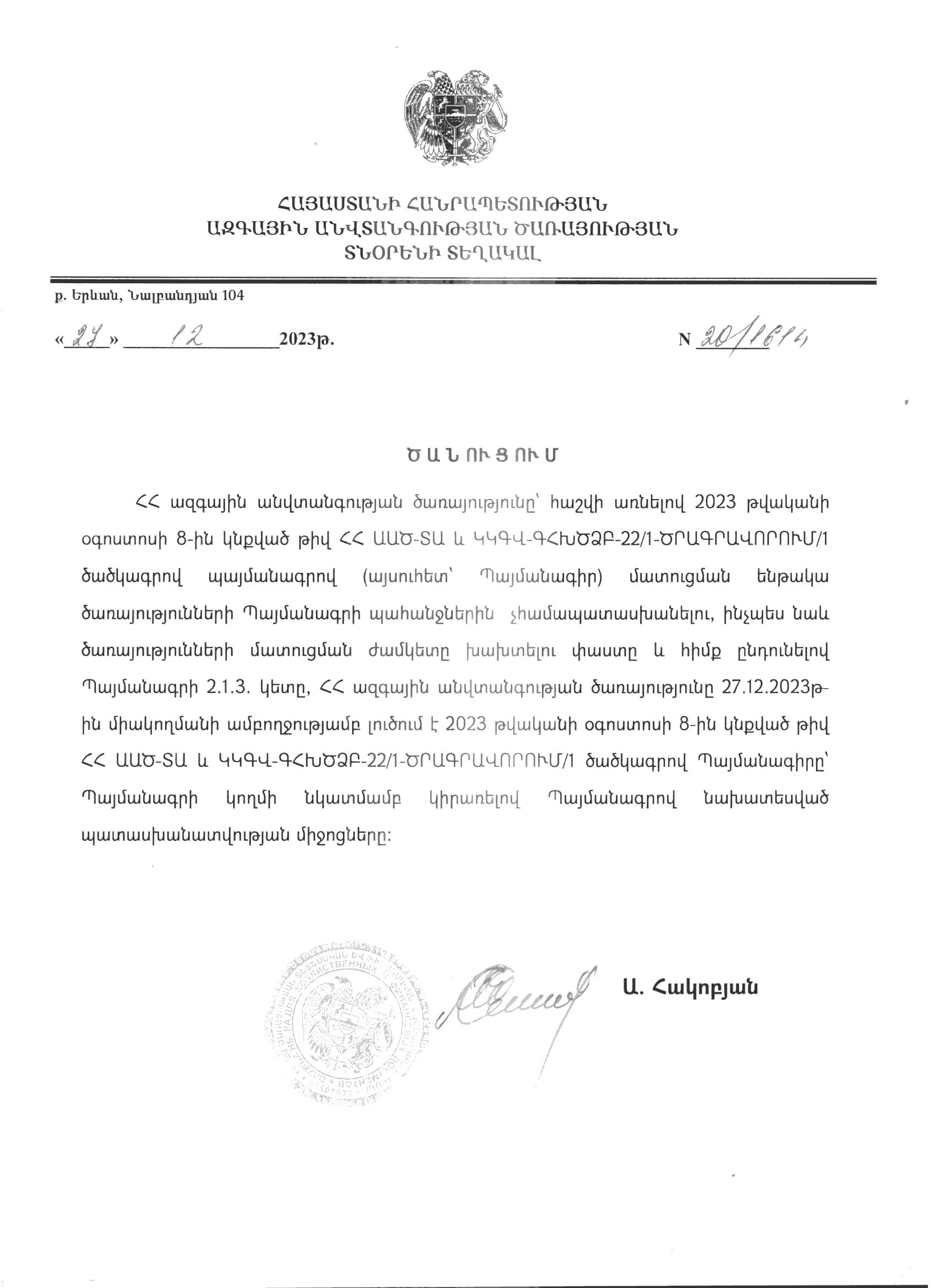 (Հրապարակված է 2023-12-27 15:29:37-ից անժամկետ)
