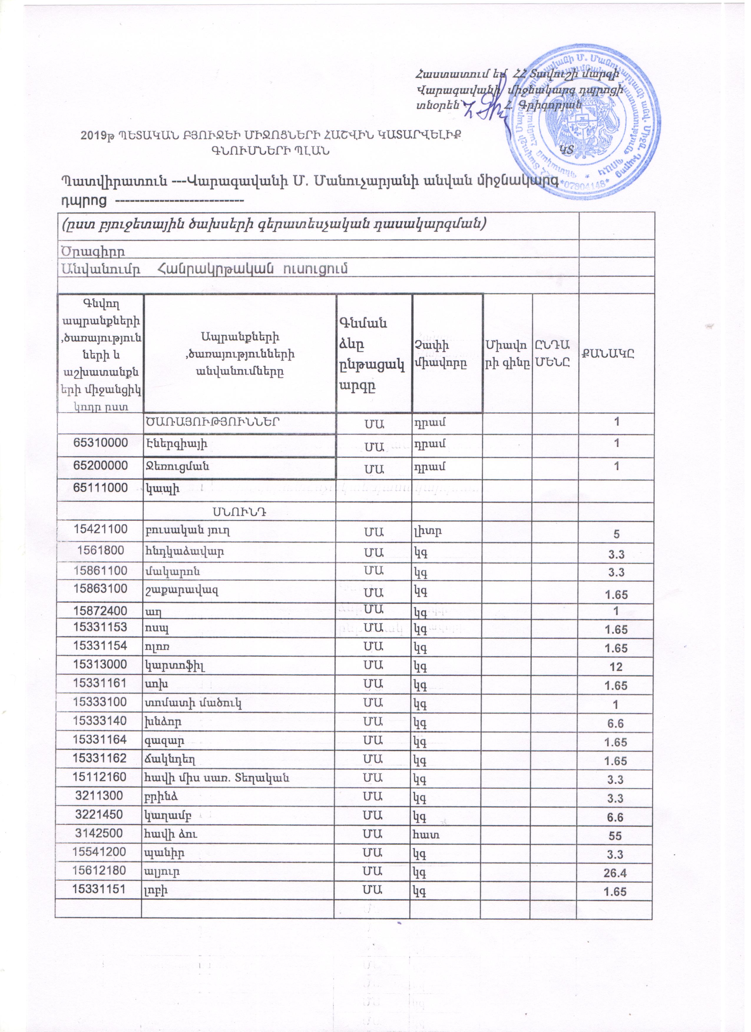 Արարադատության ակադեմիա ՊՈԱկ-ի 2019 թվականի գնումների պլան,փոփոխված՝ 19.12.2018թ.
