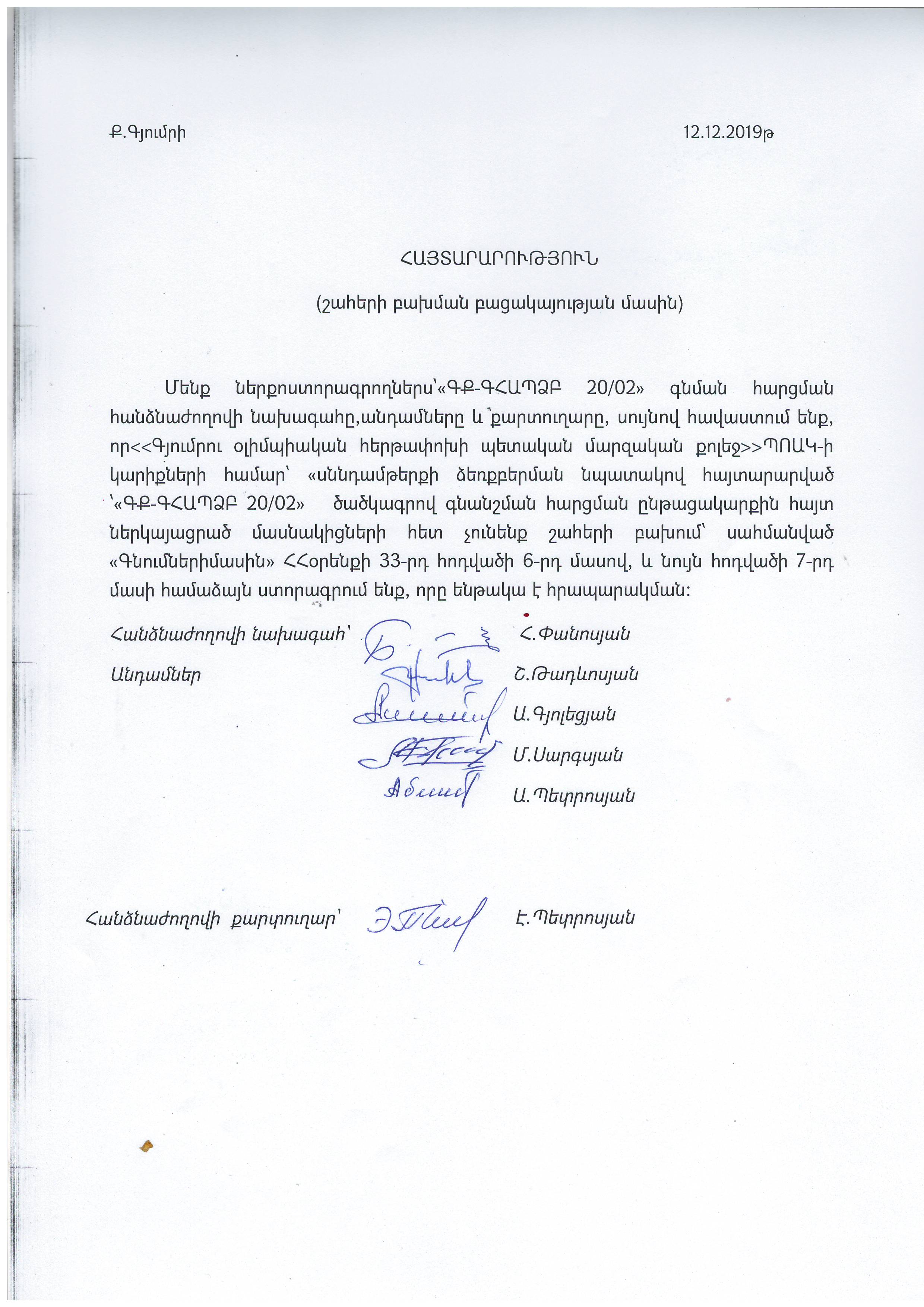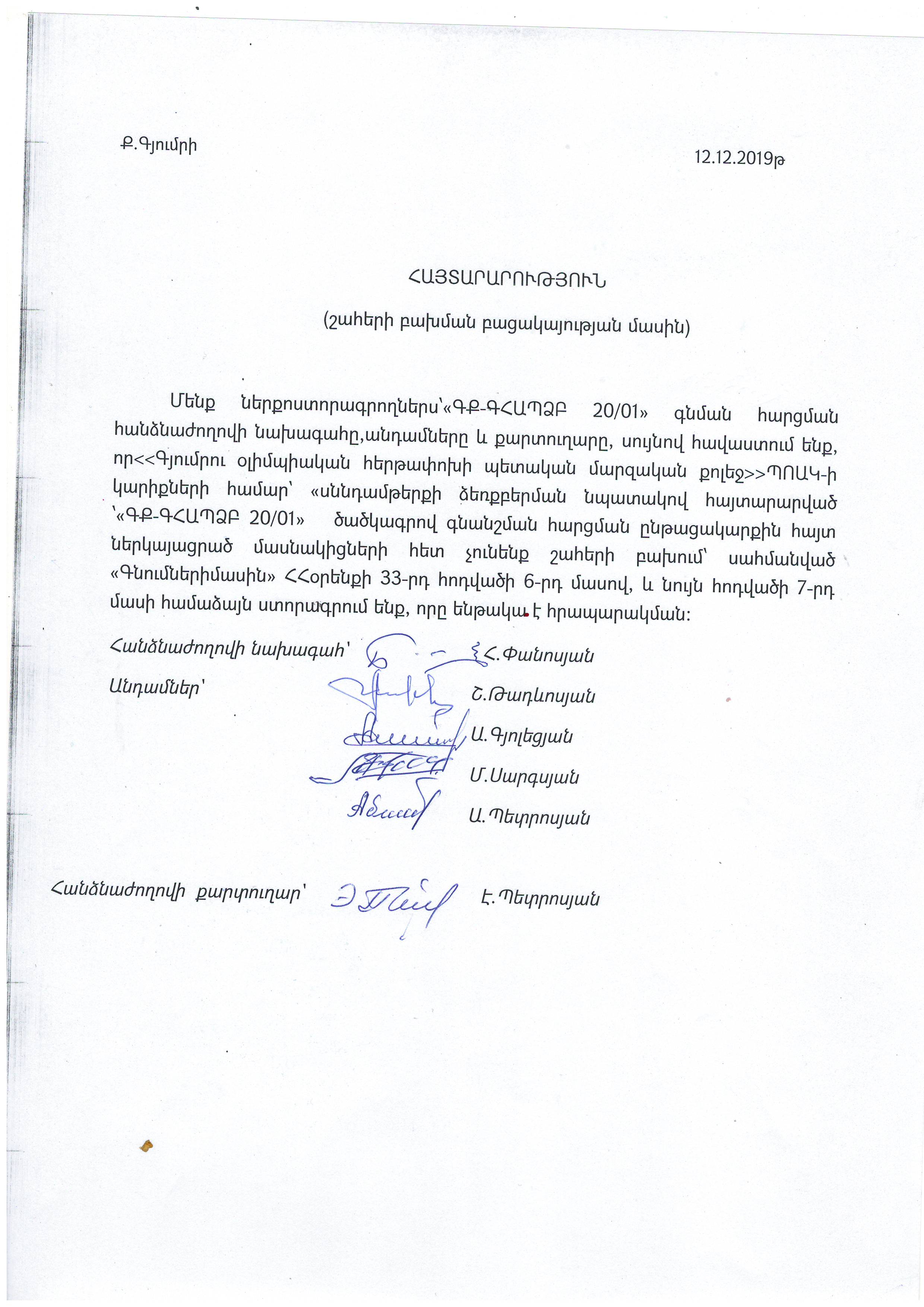 ՀԿԱԾ-ԳՀԱՊՁԲ-19/Ա-7/ՏՏ շահերի բացակայության վերաբերյալ