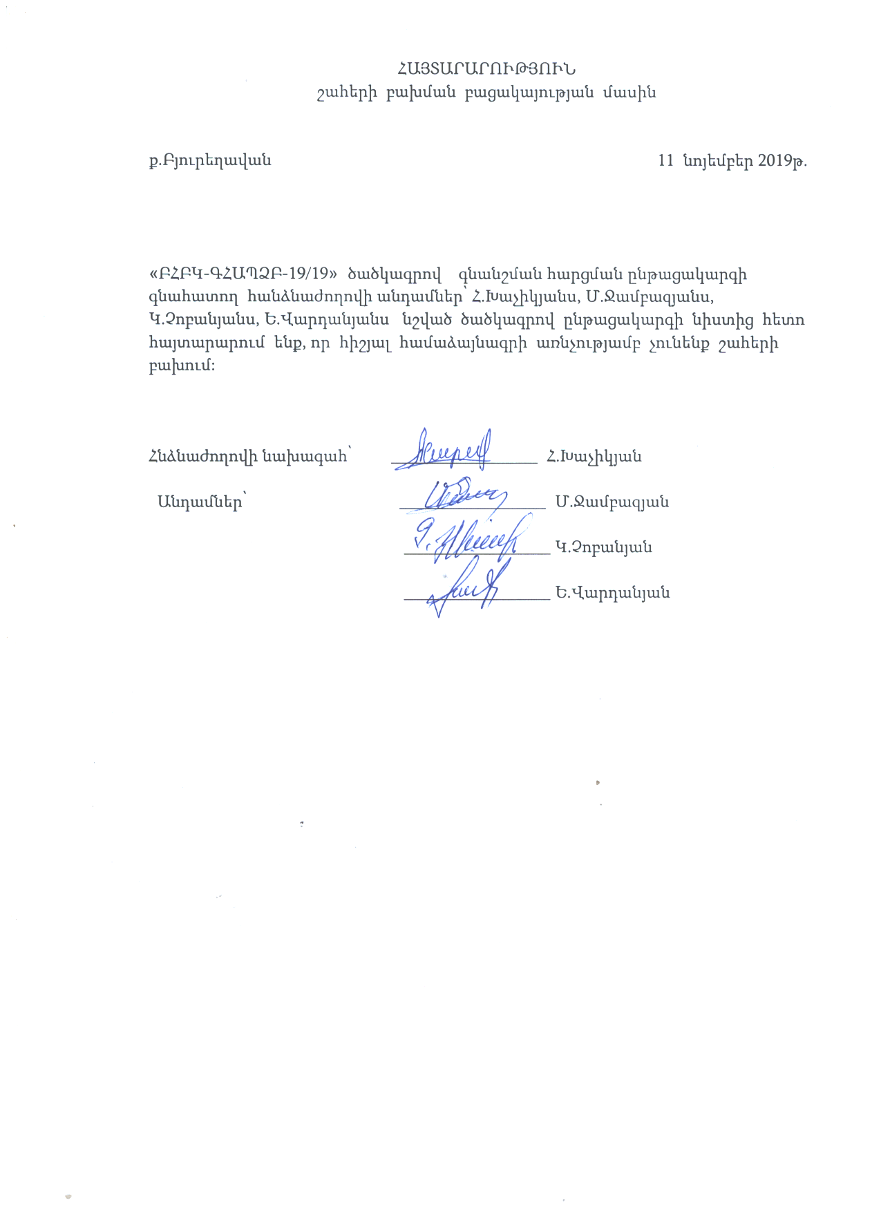 Заявление об отсутствии конфликта интересов Звартноц Авиационный Метеорологический Центр ЗАО
