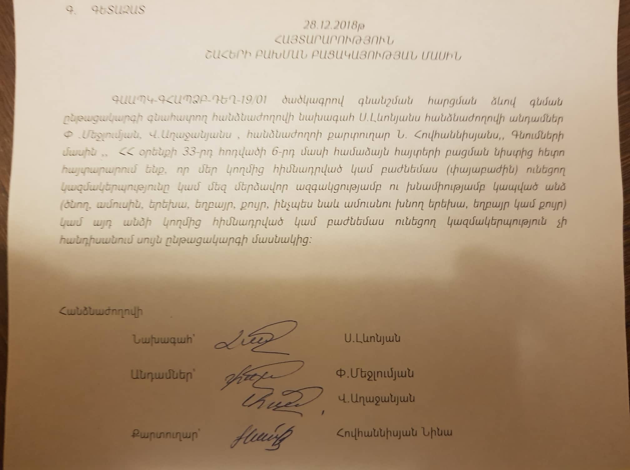 ՀՀ Վայոց ձորի մարզի Վայք համայնքի <<Վայքի քաղաքային համայնքի թիվ1 մանկապարտեզ>> ՀՈԱԿ-ի կարիքների համար <<ՎԹ1Մ-ԳՀԱՊՁԲ-19/1>> ծածկագրով ընթացակարգի շահերի բախման բացակայության հայտարարություն