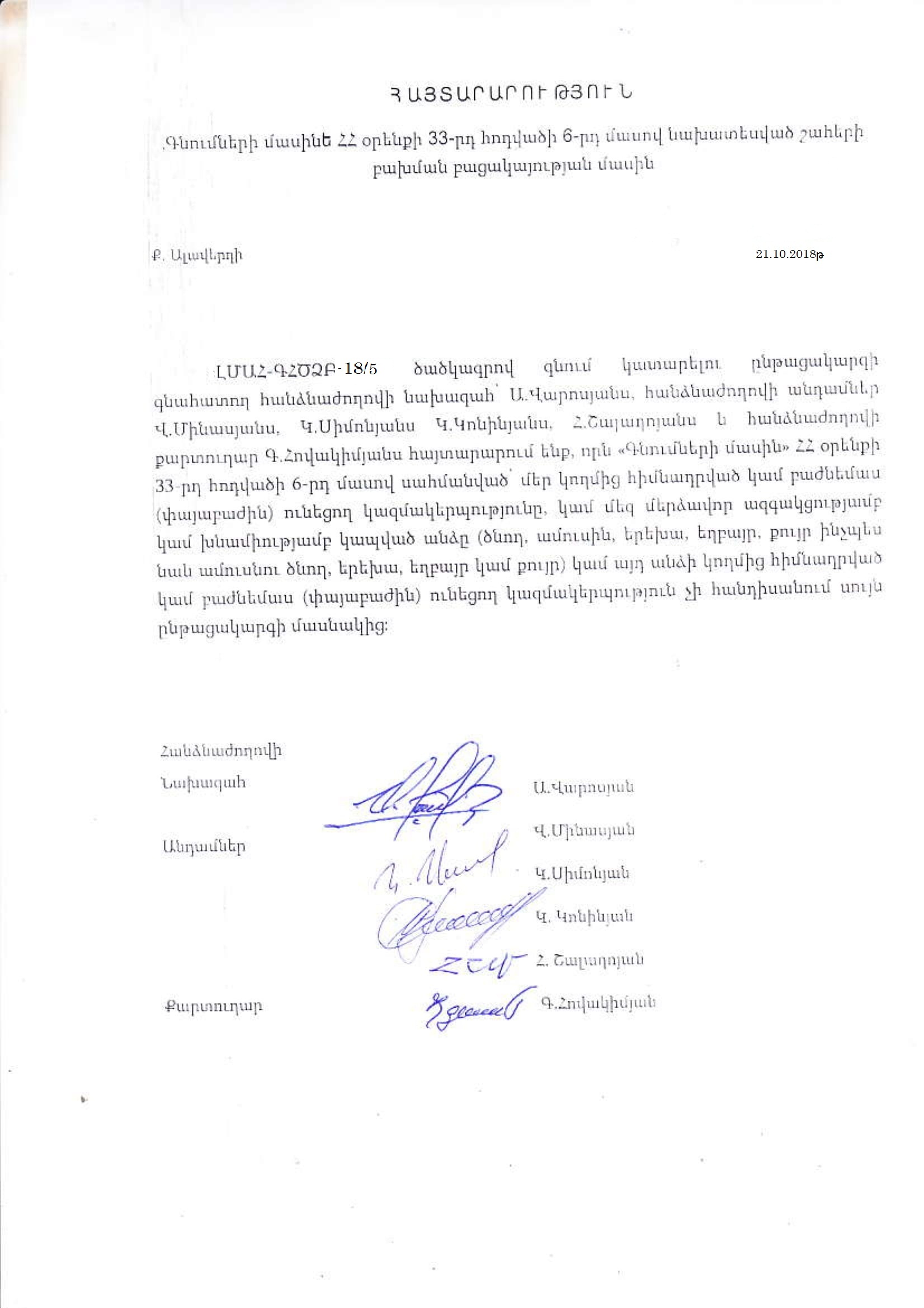 Աբովյան համայնքի կարիքների համար գիշերային լուսավորության էներգախնայող լուսատուներ ձեռք բերելու նպատակով գնահատող հանձնաժողովի շահերի բախման բացակայության մասին հայտարարություն