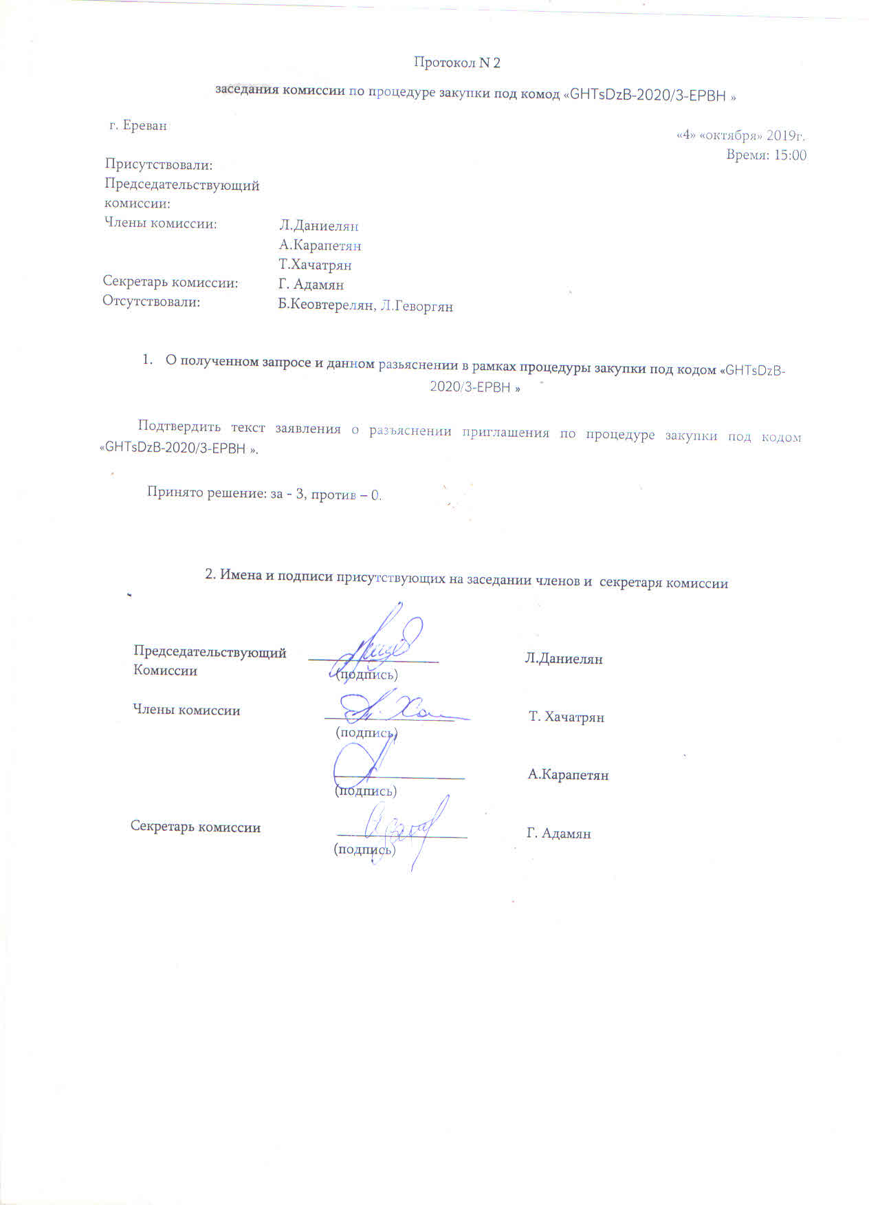 Протокол заседания оценочной комиссии в результате процедуры закупки под кодом «GHTsDzB-2020/3-EPBH».